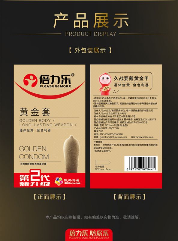 【避孕润滑】倍力乐黄金套10只装(方包)